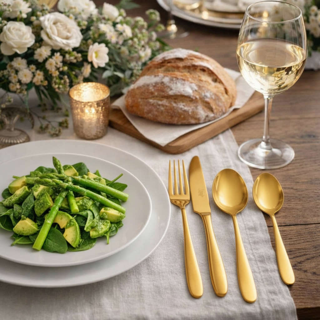 הכניסו שיק איטלקי נועז לשולחן האירוח עם סט סכו"ם 24 חלקים מדגם Fast Ice Gold מבית המותג האיטלקי Salvinelli. סט זה שואב השראה מקווים אורבניים ודינמיים, כשהוא מתהדר בציפוי PVD יוקרתי בגוון זהב מט חם ומתוחכם, המעניק לכלים מראה עכשווי, חד ובעל נוכחות דומיננטית שאי אפשר להתעלם ממנה.