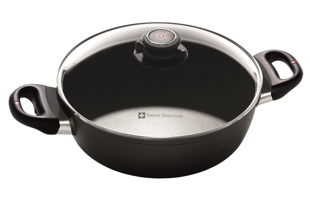 סיר נמוך סוטאז' 24 ס"מ | 3 ל' מאלומיניום יצוק עם ציפוי יהלומים נון-סטיק מבית Swiss Diamond