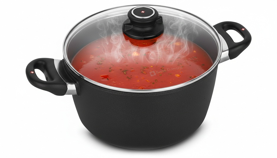 סיר גבוה 24 ס"מ | 5.2 ל' מאלומיניום יצוק עם ציפוי יהלומים נון-סטיק מבית Swiss Diamond