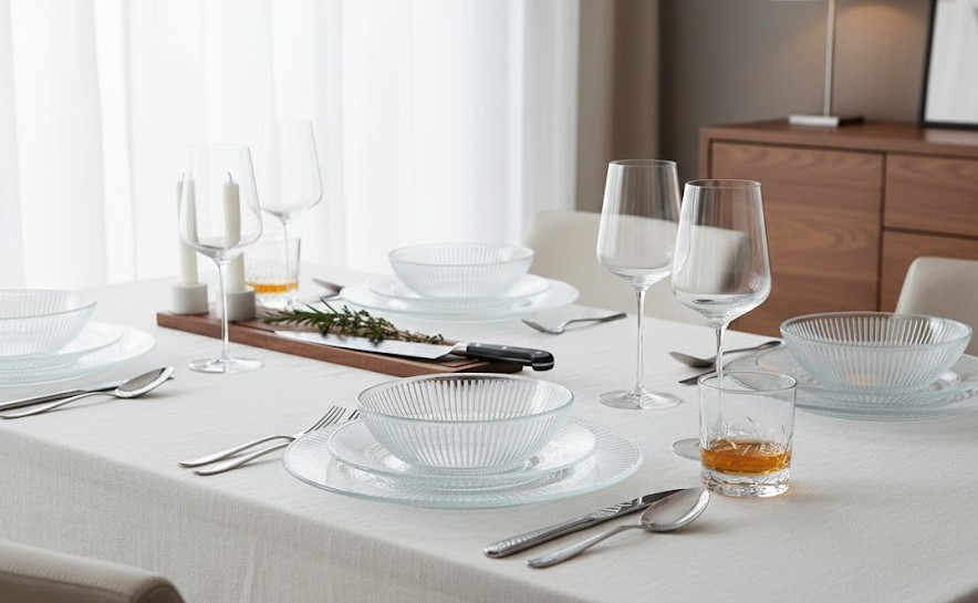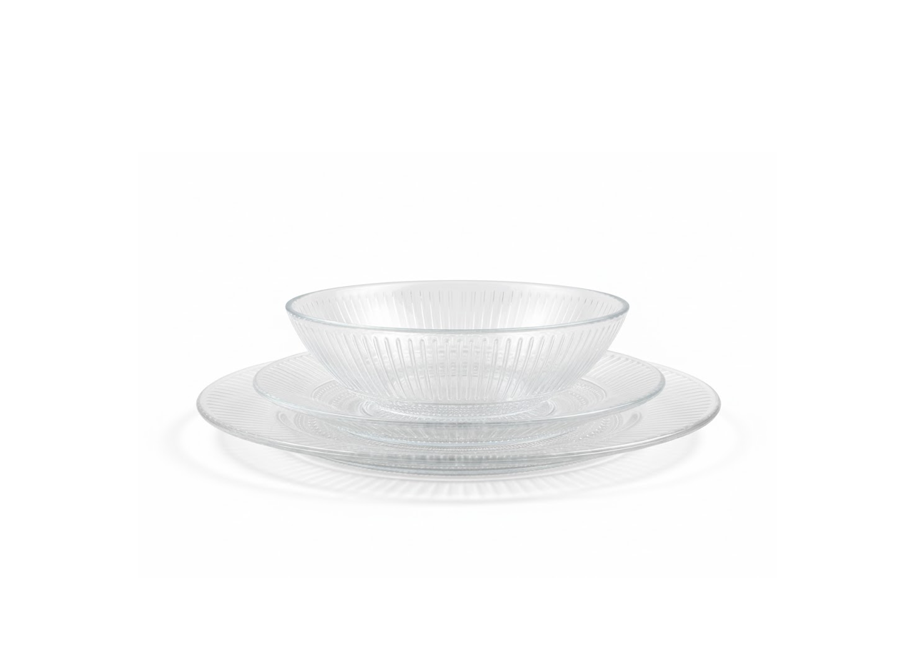 מערכת אוכל זכוכית שקופה תוצרת Arcoroc – סט צלחות 18 חלקים ל-6 סועדים
