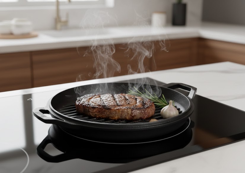 - גימור: ברזל יצוק חשוף (Bare Cast Iron) – עבר טיפול בשמן (Seasoned)