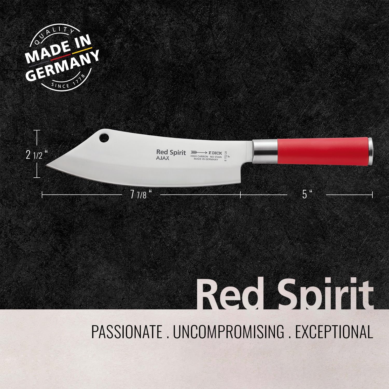 סכין ה-AJAX Red Spirit של DICK היא יותר מכלי עבודה; היא פריט אספנות שמשלב היסטוריה, אומנות וביצועים יוצאי דופן. הסכין נקראת על שם גיבור יווני ממלחמת טרויה, ומכבדת מסורת עיצובית שהחלה עוד בשנות ה-30 של המאה הקודמת. DICK, חברה גרמנית בעלת מורשת ענפה של מעל 200 שנה, ידועה בפלדה האיכותית שלה עם אחוז פחמן גבוה המבטיחה עמידות וחדות לאורך זמן. סכין זו מיועדת לחובבי בישול שמחפשים פריטים ייחודיים ואיכותיים. הלהב הרחב, יחד עם הקצה הקעור, מאפשרים טיפול מושלם בבשר ובדגים, בעוד שהחור הייעודי בלהב מאפשר אחסון נוח וקומפקטי. זוהי הבחירה המושלמת לכל מי שמעריך עיצוב מקורי, איכות בלתי מתפשרת וסיפור ייחודי מאחורי כל כלי עבודה.