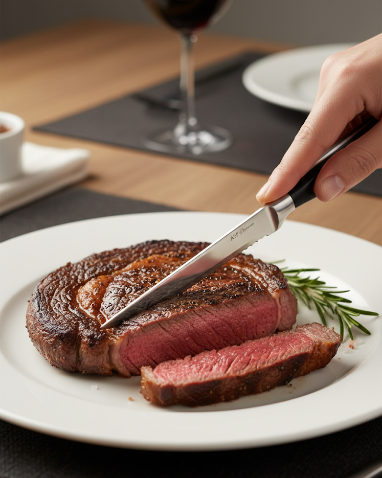 התמודדות עם סטייק או פשטידה חמה בעזרת סכין שולחן רגילה עלולה להיות מתסכלת. בדיוק בשביל זה קיים סט סכיני הסטייק המשוננות: הוא הופך את החיתוך לחוויה קלה, מדויקת ומהנה. כל אחת מהסכינים בסט נועדה לשפר את חווית האוכל, ולאפשר לכם ליהנות מכל ביס, ללא מאמץ. בזכות הלהב המשונן והידית הארגונומית, תוכלו לחתוך בשר, מאפים וקינוחים בצורה חלקה ונקייה. כדי לשמור על איכותן ועל חדותן לאורך זמן, מומלץ מאוד לשטוף את הסכינים מיד לאחר השימוש ולייבש אותן באופן יסודי, כך תמנעו חלודה ותבטיחו שהן ימשיכו לשרת אתכם בצורה הטובה ביותר עוד שנים רבות.