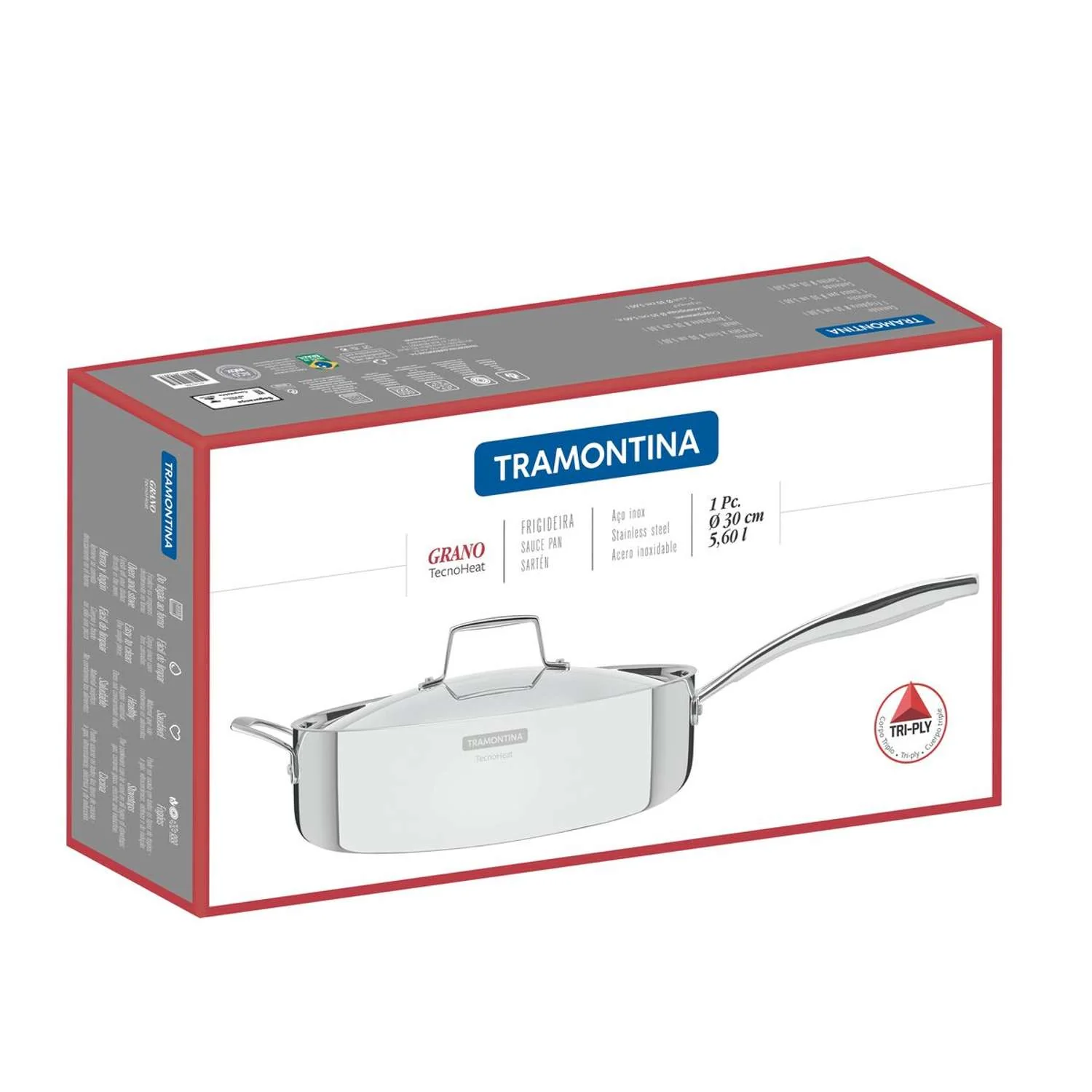 הכירו את סוטאז' הנירוסטה 3-שכבות מבית Tramontina, המשלב מסורת ברזילאית של 100 שנות איכות עם טכנולוגיה עילית: גוף הסוטאז' עשוי נירוסטה 304 איכותית שאינה מחלידה. הסוטאז' מצויד בתחתית ייחודית בעלת מבנה 3 שכבות, שתוכנן לניצול חום מקסימלי, פיזור חום אחיד ומושלם וחיסכון בזמן הבישול. עם נפח של 5.7 ליטר, עיצוב מודרני וחדשני, הסוטאז' מתאים לשימוש על כל סוגי הכיריים ובתנור עד 260°C, והוא קל ונוח במיוחד לניקוי ומתאים לשטיפה במדיח כלים.